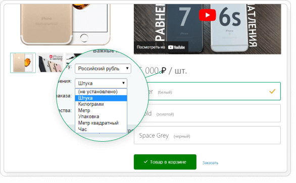 Вы можете создать любые единицы измерения и использовать их в каталоге товаров. Можно гибко настраивать их отображение